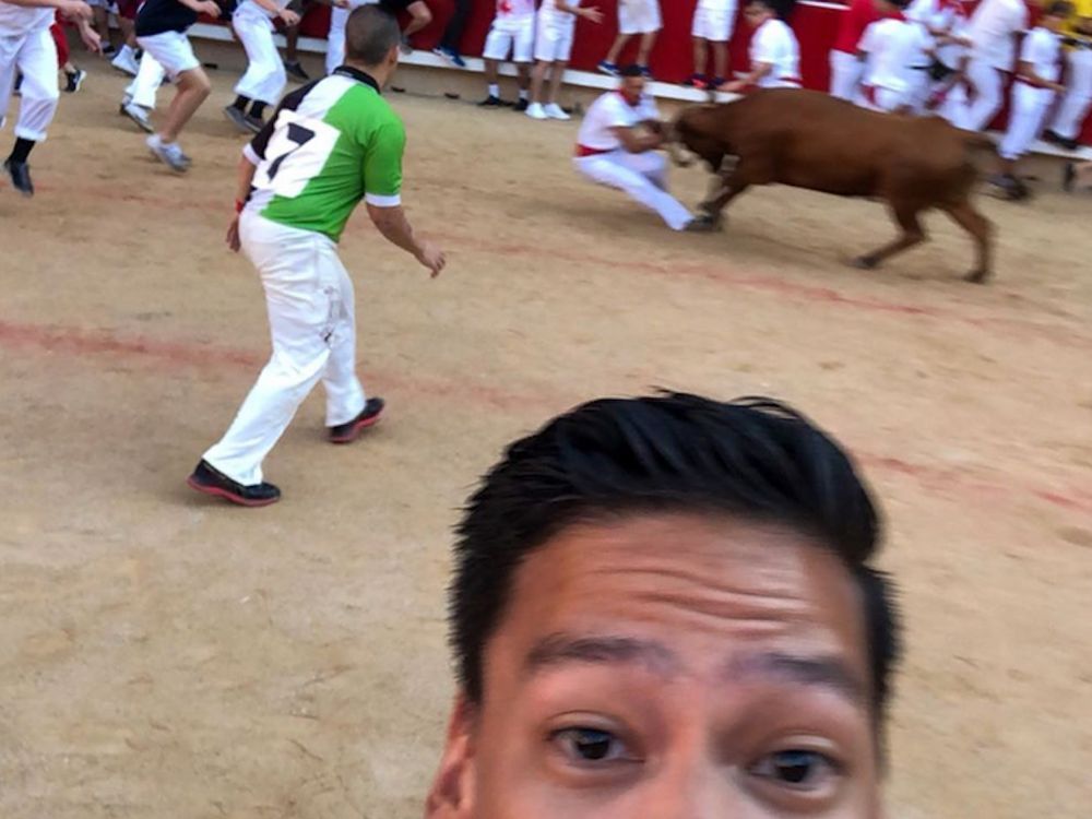 The Running of the Bulls in Pamplona, Spain has been going on since the 1500s, and every year leads to countless injuries, and sometimes even death. So in other words, people taking selfies during the event is probably not the smartest idea…